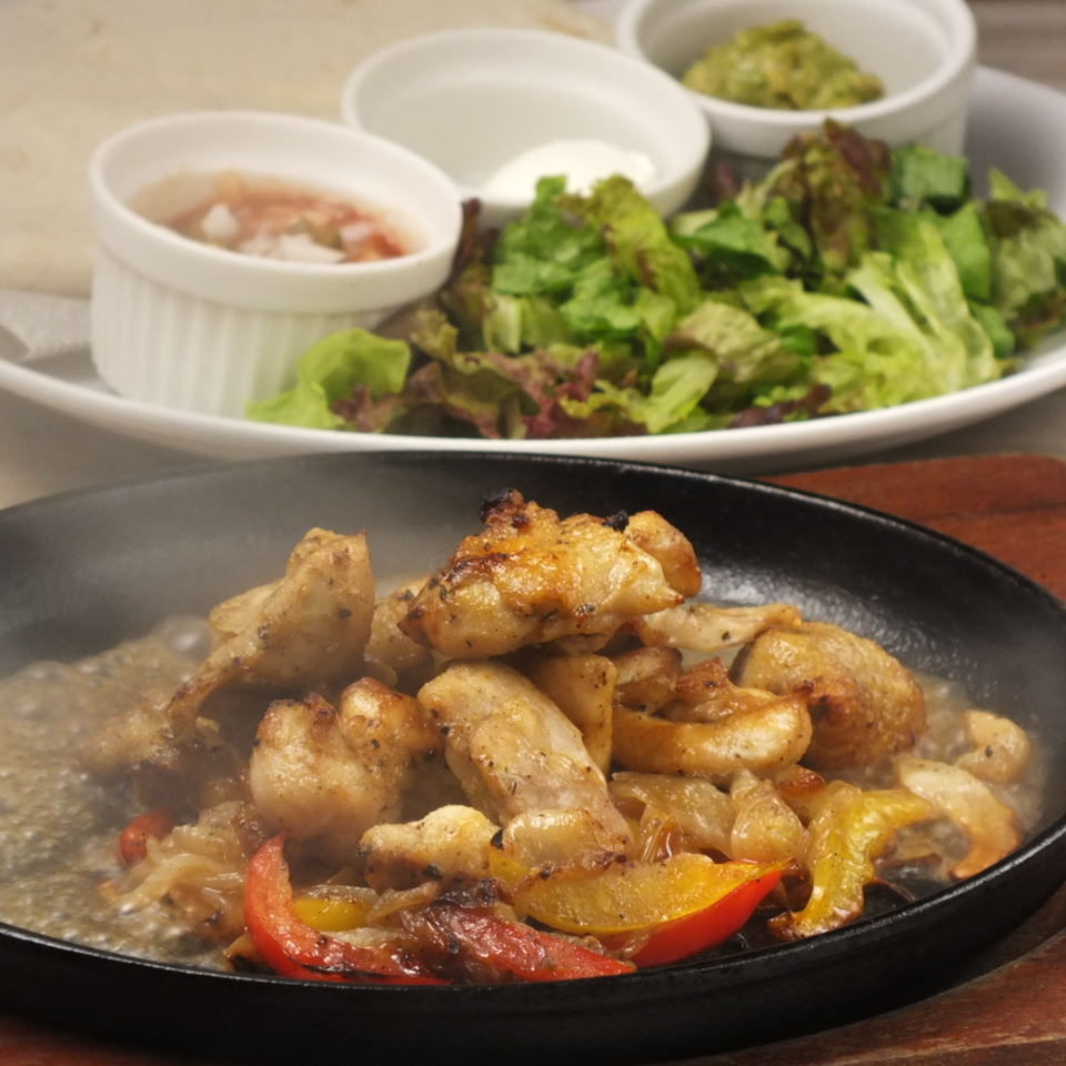 スパイシーなチキンと野菜を温かいトルティアに巻いて。